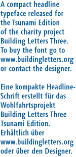 Eine kompakte Headline-Schrift erstellt für das Wohlfahrtsprojekt Building Letters Three Tsunami Edition.
