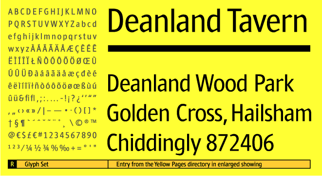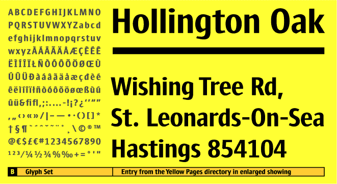 An exclusive typeface for the Yellow Pages directory of British Telecommunications Plc.