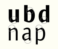 Um tiefe Einstiche, wie bei Schriften aus dem Fotosatz üblich, an den Kreuzungspunkten von Horizontalen und Vertikalen zu vermeiden, wurden scharfe und eher flache Einschnitte an diesen Stellen gezeichnet. Somit konnten dort große Weißräume geschaffen werden, die ein Verflecken verhindern.